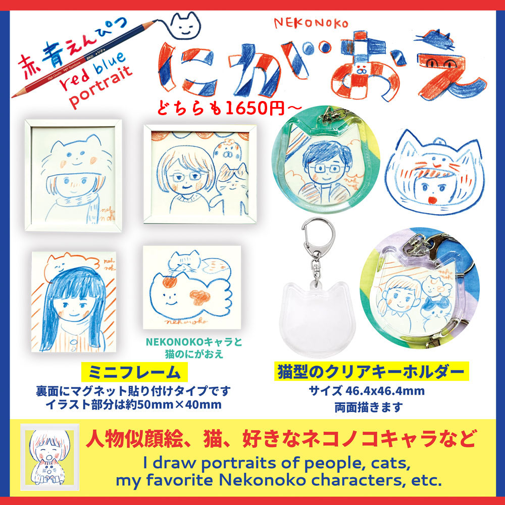 ★猫型のアクリルキーホルダー(両面ありますが表に似顔絵裏面はネコノコキャラクターを描きます。両面で似顔絵の場合は要相談)